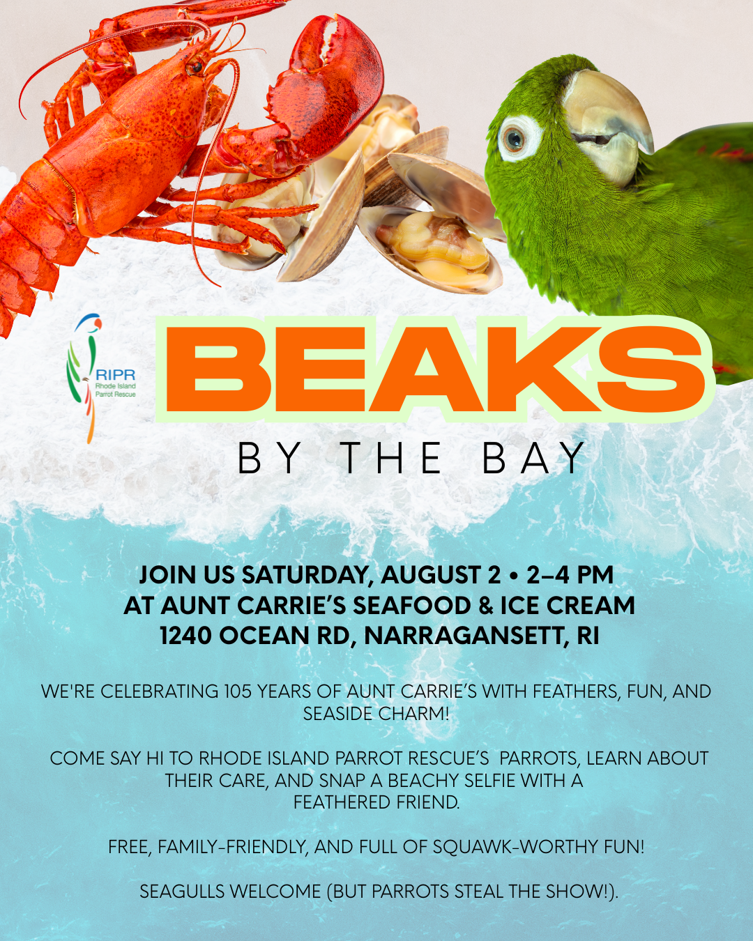 Come say hi to our rescue parrots, learn about their care, and snap a beachy selfie with a feathered friend.